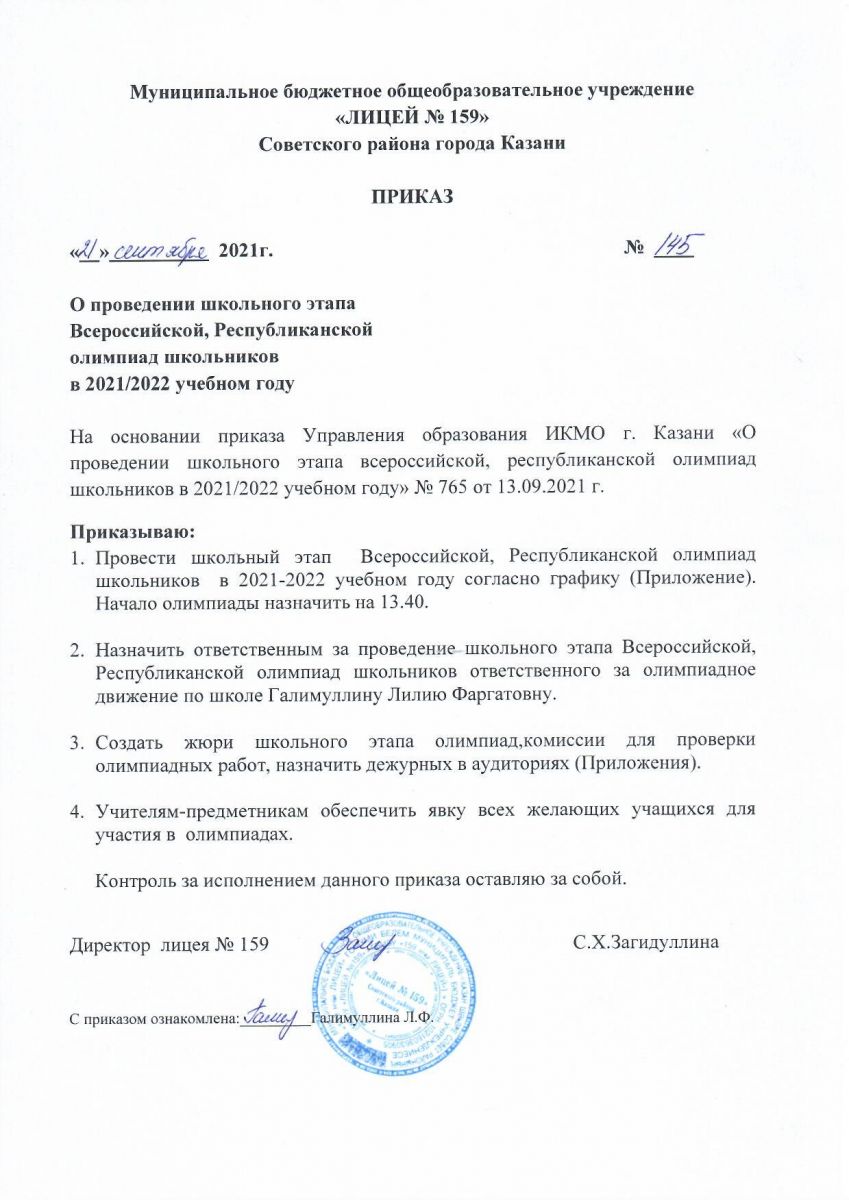 Приказ по школе победителей и призеров ВОШ и РОШ 2020-2021