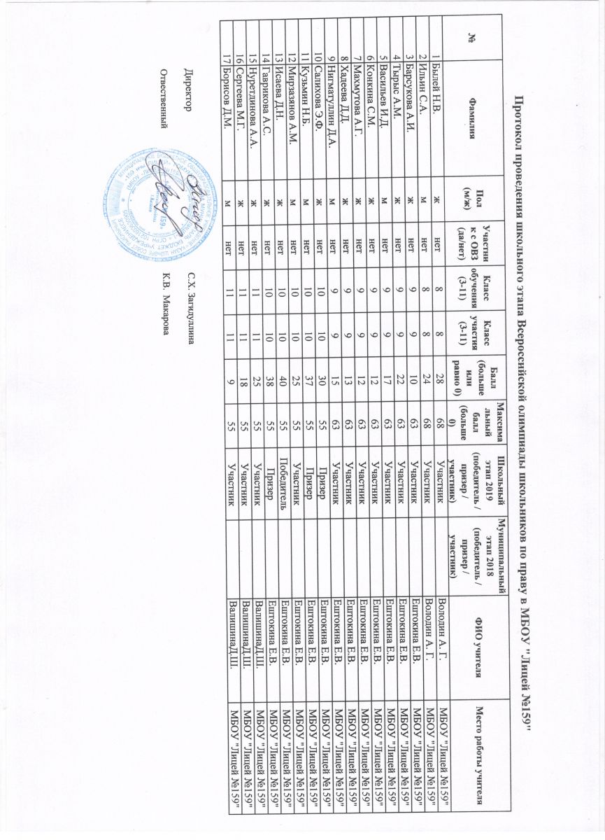 Приказ о награждении призеров и победителей ВСОШ 2019