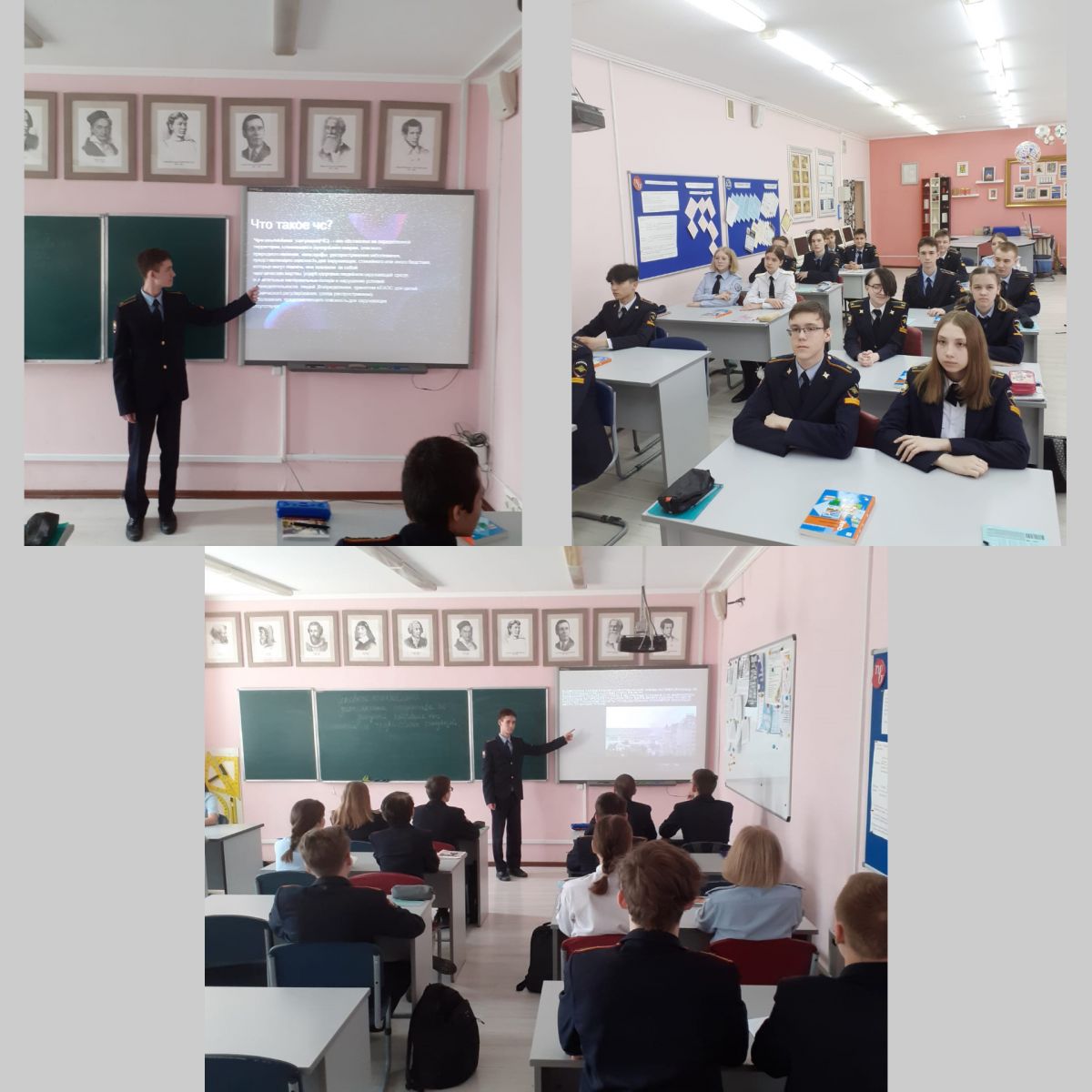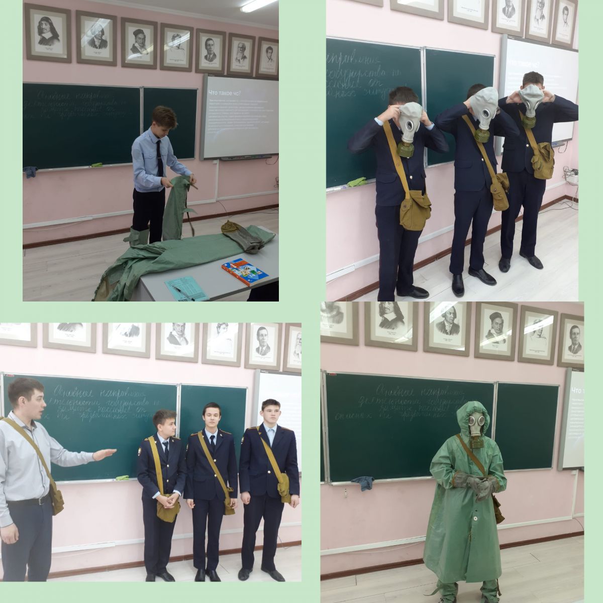 Опубликовано: 26.04.202226 апреля было проведено Всероссийский открытый урока по основам безопасности жизнедеятельности Тема открытого урока: "Основные направления деятельности государства по защите населения от опасных и чрезвычайных ситуаций". Для учащиеся 8-х классов были озвучены правила поведения в опасных и чрезвычайных ситуациях. Повторили инструктаж по надеванию противогаза, а также проводился норматив по времени надевания противогаза. Ученик 8 класса продемонстрировал порядок надевания общевоинского защитного костюма с противогазом.
