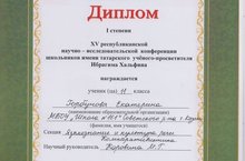 Поздравляем Горбунову Екатерину, занявшую 1 место на XV республиканской научно - исследовательской конференции имени татарского ученого - просветителя Ибрагима Хальфина. Секция Языкознание и культура речи. Научный руководитель - Коровина Майсара Гумеровна. 25.01.2020