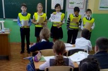 Отряд юных инспекторов движения в составе учеников 4Г класса провели для ребят 1 - 3 классов уроки, на которых напомнили о важности соблюдения правил дорожного движения. Благодаря агитбригаде, отряд смог наглядно продемонстрировать ПДД. Молодцы!