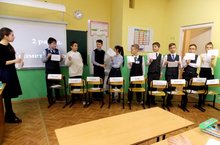 Ученики 6А класса приняли участие в интеллектуальной игре "Битва разумов". Данная игра была организована в рамках городского конкурса "Классный марафон!". Желаем успехов и победы на конкурсе!