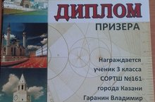 Учебный год завершен, но награды продолжают находить своих геров... Поздравляем учеников 3А класса Гаранина Владимира и Решетняк Игоря, призеров городской олимпиады по математике. Учитель: Батыршина М.Р.