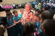 Сегодня прошло городское мероприятие, посвященное памяти освобождения узников концлагерей. 2Б класс с классным руководителем Шагановой О.А. принял участие в чествовании. Ребята спели песню военной тематики.