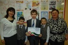 “Мин бит татар малае!” район конкурсында 2нче урын яулаган 5А сыйныфы укучысы Сибагатуллин Салаватны тәбрик итәбез! Конкурста катнашкан 4А сыйныф укучылары Әскәров Рүзәлгә һәм Валиуллин Булатка, Салаватны конкурска әзерләгән укытучылар – Девятеева Әнисә Әнвәровнага һәм Хәбибуллина Клара Альбертовнага зур рәхмәтебезне белдерәбез!