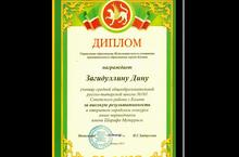 Поздравляем Загидуллину Дину, ученицу 10 Б класса, награжденную дипломом завысокую результативность в открытом городском конкурсе юных переводчиков имени Шарафа Мударриса. Выражается благодарность педагогам, подготовившим Дину: Зариповой Ф.С. и Хабибуллиной К.А.