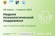 Департамент государственной политики в сфере защиты прав детей Минпросвещения России сообщает о проведении ФГБОУ ВО «Московский государственный психологопедагогический университет» «Недели психологической поддержки». Неделя проводится в рамках реализации мероприятия по оказанию консультационной помощи родительскому сообществу федерального проекта «Современная школа» национального проекта «Образование» и будет проходить в период с 28 марта по 1 апреля 2022 г. в онлайн формате. Мероприятия Недели (онлайн конференции, направленные на проработку актуальных проблем, связанных с тревожным и стрессовым состоянием как родителей, так и детей, психолого-педагогические и методические консультации от ведущих российских экспертов для родителей детей от 0 до 18 лет) проводятся бесплатно. Программа Недели, а также регистрационная форма для участия размещены по адресу в сети «Интернет»: http://бытьродителем.рф/weekmarch2022.