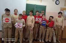 Для учащихся 7Г класса прошло мероприятие, посвященное соблюдению правил дорожного движения. Отряд юных инспекторов движения 9Б класса подготовил обучающий как теоретический, так и практический материал. Ребята повторили ПДД, дорожные знаки, а также правила поведения вблизи железнодорожных путей и других мест, несущих опасность для жизни и здоровья. Организатор - Джамбаева Л. Ш.