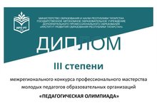 Стали известны итоги межрегионального конкурса профессионального мастерства молодых педагогов образовательных организаций "Педагогическая олимпиада". В данном мероприятии приняла участие учитель начальных классов Гайсина Гульнара Римовна. Пройдя конкурсные испытания, ей удалось завоевать диплом III степени. Поздравляем Гульнару Римовну и желаем дальнейших успехов!