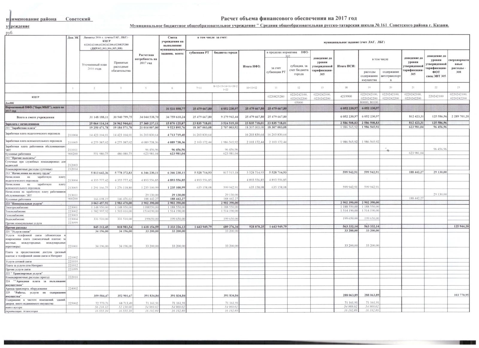 Расчет объема финансового обеспечения МБОУ "Школа № 161" на 2017 год