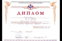 Дипломом за 2 место по каратэ награждается Муртазин Булат, ученик 3 г класса.
