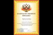 Награждается благодарственным письмом министерства образования и науки РТ педагогический колектив за поддержку , организацию и проведение благотворительного детского Республиканского фестивала "Маленькие Звезды Татарстана"