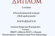 6а сыйныфы укучысы Анамов Нурисламны " Минем туган ягым" исемле республика бәйгесендә 1-урын алуы белән котлыйбыз.