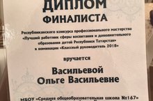 Искренне поздравляем Ольгу Васильевну, финалиста Республиканского конкурса профессионального мастерства "Лучший работник в сфере воспитания и дополнительного образования детей Республики Татарстан" в номинации "Классный руководитель 2018"!