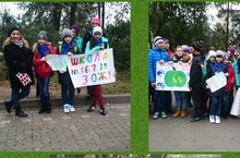 вокруг своей школы. Они собирали мусор, собирали ветви деревьев, приводили в порядок цветочные клумбы.