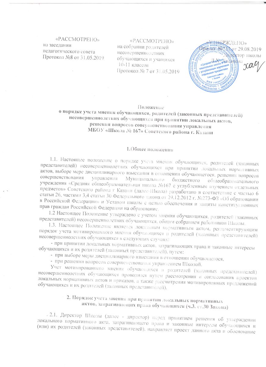 Муниципальное бюджетное общеобразовательное учреждение «Средняя общеобразовательная школа №167 с углубленным изучением отдельных предметов» Советского района г. Казани