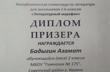 Поздравляем с очередной победой ученика 2г класса Бадыгина Азамата! В Республиканской олимпиаде по чтению "Литературный марафон" Азамат стал призером. Мы задали ему вопрос: "Что нужно делать, чтобы побеждать в конкурсах и олимпиадах?"
