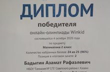 Поздравляем Бадыгина Азамата ученика 2г класса, ставшего победителем сразу в двух он-лайн олимпиадах по русскому языку и математике Winkid. Так держать!