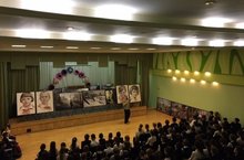 На экране были изображены портреты А. С. Пушкина, М. Ю. Лермонтова, Н. В. Гоголя, поэта-героя 1812 года Д. Давыдова, других мастеров культуры-юбиляров.