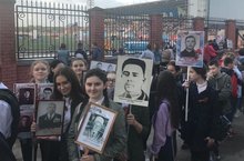 Большинство из ребят и учителей почтили память своих предков, держа их портреты во время всего шествия «полка».