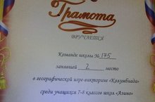 Поздравляем команду учеников 7-8 классов (Камалова Айзата, Афанасьеву Софью, Зарипову Камилю, Муртазину Валерию, Зартдинова Саида, Человечкову Дарью), занявшую 2 место в районной географической игре-викторине "Колумбиада".