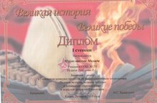 Поздравляем Милославскую Миладу, ученицу 4 «Б» класса (учитель Гафурова А. С.) занявшую 1 место в городском конкурсе проектов по информационным технологиям «Великая история, великие победы» в номинации «Презентация». Молодец! Дальнейших творческих успехов!