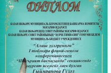 28 нче апрель көнне мәктәбебезнең 9А сыйныфы укучвсы Гыймранова Гүзәл (җитәкчеләре: Гафарова Г. Г., Хакимова М. С.) « Алиш эзләреннән» I төбәкара фәнни- гамәли конференциясенең «Шигърият бакчасында» секциясендә катнашып, лауреат исеменә лаек булды.Котлыйбыз, афәрин!