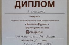 Искренне и вдохновенно выступила на I городском открытом конкурсе детских творческих коллективов «В созвездии Пушкина…» ученица 9а класса Гильмутдинова Дина (учитель Л.С. Клячина). «Слово правит миром » - так называлось её выступление в конкурсе ораторского мастерства «Слово о русской литературе», в котором Дина заняла второе место и получила Диплом II степени.