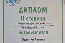Благодарим Бадыгина Азамата, ученика 4г класса, за победу в замечательном городском конкурсе "Мир сегодня и завтра" в номинации "Профессия - учитель". Азамат, спасибо от имени всех учителей за ролик, посвящённый Году педагога и наставника!