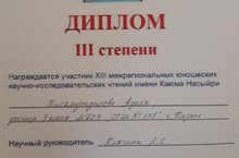 Ученица 9 а класса Хисамутдинова Аделя приняла участие в XIII Межрегиональных чтениях имени К.Насыйри. Она представила свою работу «Школьный музей как центр исследовательской деятельности учащихся» (руководитель Клячина Л.С.) В конференции приняли участие школьники с Карачаево-Черкессии, Башкортостана, Ульяновска, Удмуртии и многих других уголков России. И поэтому вдвойне приятно, что ученица нашей школы стала призером столь солидной конференции и получила Диплом III степени. Оценивали юные дарования многоуважаемые члены жюри – преподаватели казанских ВУЗов.