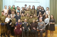 2 марта в актовом зале нашей школы в рамках подготовки к 70- летию Великой Победы прошла встреча учащихся с ветеранами Великой Отечественной войны и с тружениками тыла. Ветераны - частые гости нашей школы, и учащиеся всегда рады этим интересным встречам. Вот и на этот раз юные артисты подготовили для ветеранов театрализованное представление. Проникновенные стихи о войне, песни военных лет и их инсценировки, отрывки из произведения «А зори здесь тихие» заставляли ветеранов и всплакнуть, и посмеяться, постановка пришлась им по душе. Ветераны горячо поблагодарили ребят, отвечали на вопросы. Гости получили много поздравлений, душевных пожеланий и небольшие подарки. Ветерану войны Староверову Георгию Поликарповичу были высказаны особые поздравления и пожелания в связи с 90-летием со дня рождения.