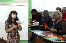 23 октября 2014 года состоялся семинар-практикум для молодых педагогов со стажем работы до 2-х лет «Активная жизненная позиция молодого педагога как ресурс его профессионального становления». Открывала семинар методист УМС ИМО УО г.Казани по Советскому району Аббасова М.Л. Прошла презентация направлений деятельности Ассоциации молодых педагогов Советского района: профессиональные конкурсы и гранты, социальная работа в школе, внеурочная деятельность, творческая деятельность. Отдельным сюрпризом для участников семинара стала беседа психолога СОШ№141 Фатиновой М.Л. о трудностях педагогического труда и их преодолении. Активное участие в семинаре принял учитель истории школы № 175 Спиридонов Д.А., который поделился своим опытом социальной деятельности в школе.