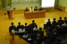 Сегодня, 22 сентября 2014 года, в рамках месячника «Экстремизму - нет!» состоялась встреча старшеклассников школы с представителями органов прокуратуры Советского района г. Казани. В ходе беседы были затронуты вопросы о неформальных молодежных движениях и объединениях, борьбы с экстремизмом и терроризмом. Старшеклассники получили красочные брошюры от МВД по Республике Татарстан «Осторожно-терроризм!»