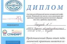 На базе гимназии № 90 Советского района г. Казани прошла республиканская научно-методическая конференция "Взаимодействие школы и вуза в реализации приоритетных направлений развития школьного образования: опыт, проблемы, перспективы". В работе конференции приняла участие Гафурова А. С., учитель начальных классов школы №175. Педагог поделилась опытом своей работы и получила диплом участника конференции.