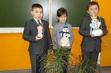 С интересом творили снежные фигурки первоклассники. И вот три друга – три лучших в классе снеговика заняли почетное место на школьной выставке(Гайнуллина А., Егоров И., Мансуров А.) Первое победное место и грамоту получила Гайнуллина А.