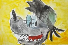 На уроке изобразительного искусства «В мире сказок» первоклассники создали образ веселого волка. Вспомнили все знакомые сказки. Везде волк злой и голодный. Всегда приходится его перевоспитывать. Перебрали любимые мультфильмы. И вот он - веселый современный волк! (На фото: рисунок Мансурова Артура, 1б класс, учитель Пантюхина Е.П.)