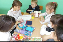 Ученики 1 б и 2 б классов в группе продленного дня познакомились с куклами – артистами. Наставники из 5г класса познакомили их со сценарием сказки «Курочка Ряба», раздали роли, научили обращаться с куклами.