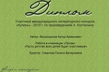 Фахуртдинов Артур, ученик 8а класса, стал участником международного литературного конкурса!