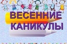 Весенние каникулы для обучающихся 1-11 классов 26.03.2022