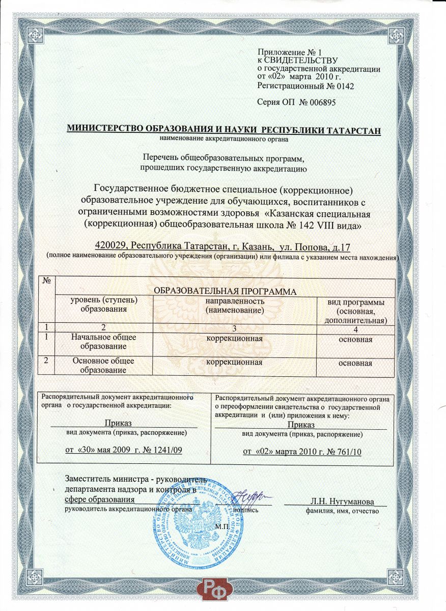 Государственное бюджетное общеобразовательное учреждение "Казанская школа №142 для детей с ограниченными возможностями здоровья"