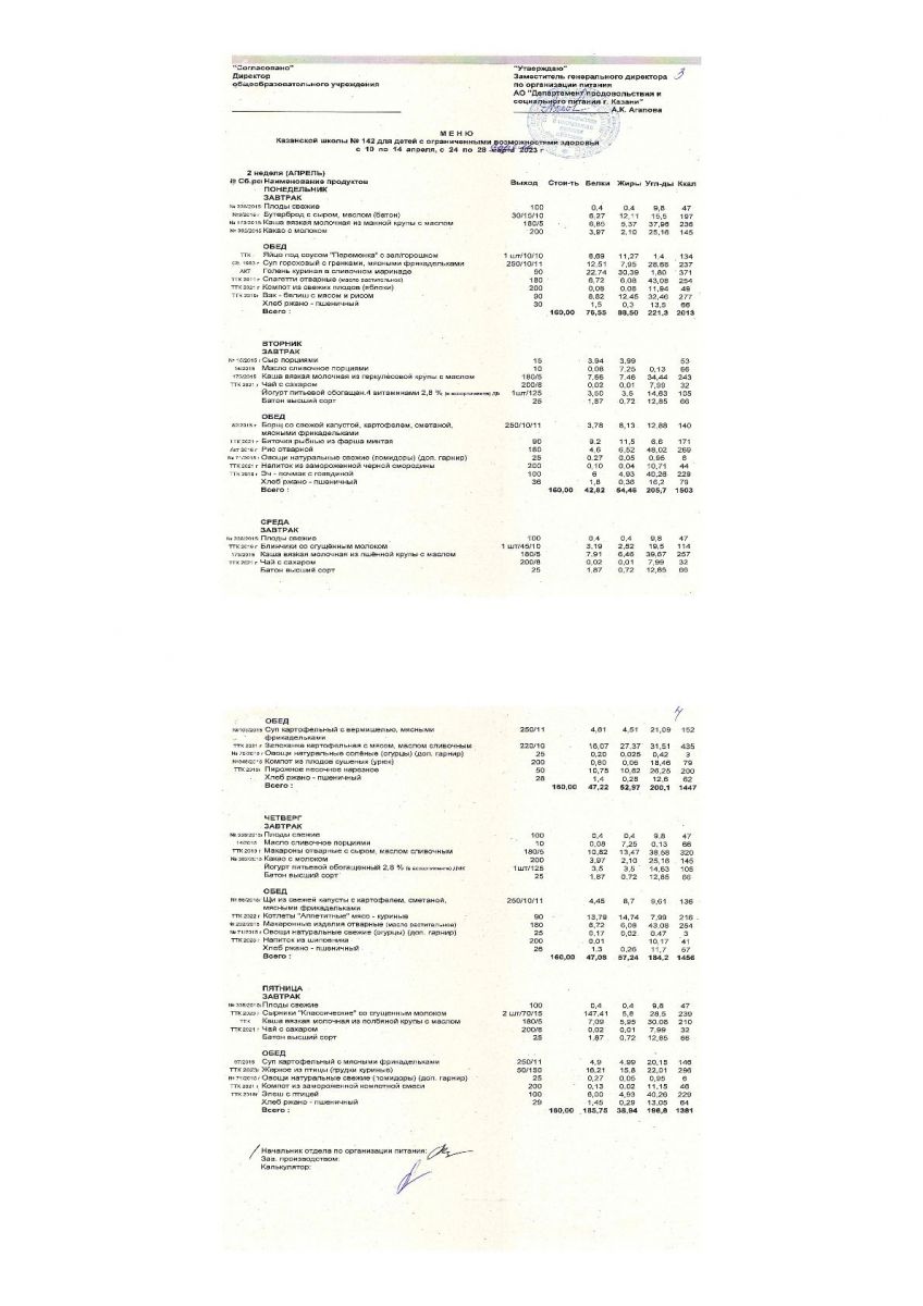 Меню с 10 по 14 апреля, с 24 по 28 апреля 2023 года