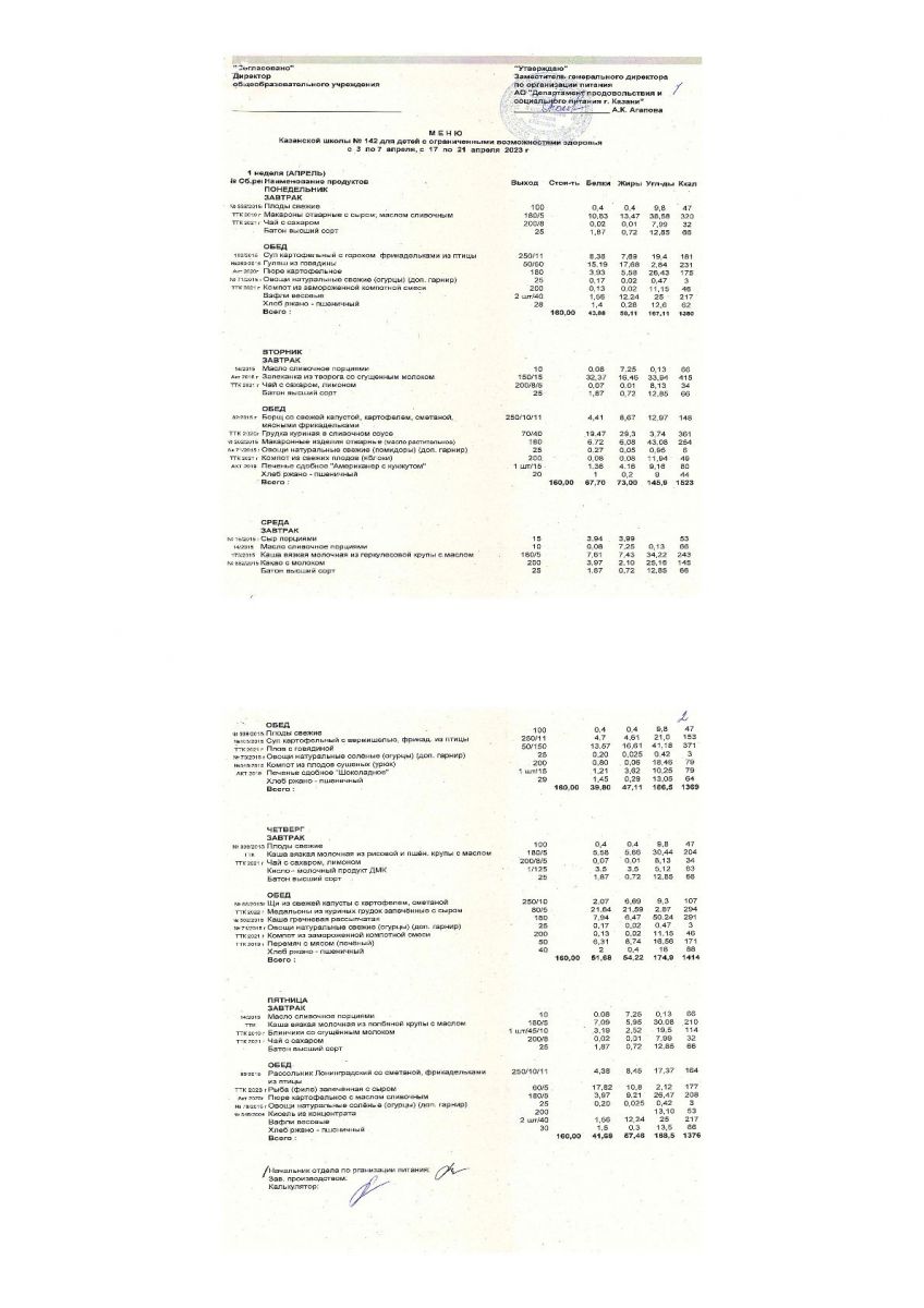 Меню с 3 по 7 апреля, с 17 по 21 апреля 2023 года