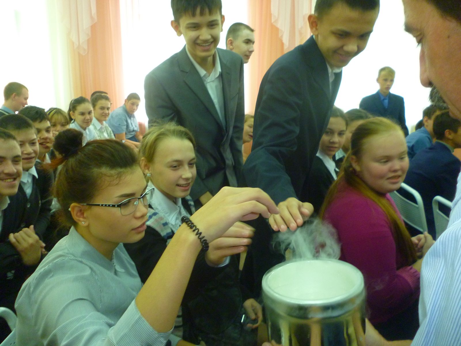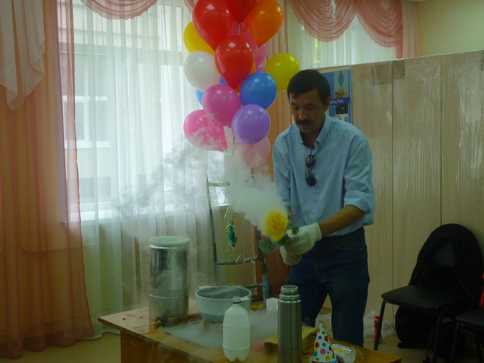 09.09.16г. в рамках "Недели добра" в гости к ребятам пришли представители Казанского физико-технического института. Ученые провели интересную научную беседу, которая сопровождалась демонстрацией опытов в очень интересной игровой форме по теории газов, света и волн. Ребята были активными участниками всех исследований, с большим интересом наблюдали за превращениями в колбах, пробовали на ощупь то, что получалось во время опытов. В конце мероприятия ребята получили по воздушному шарику и шоколадке. Ждем новых встреч с этими добрыми "волшебниками"!Фото1,Фото2,Фото3,Фото4,Фото5,Фото6,