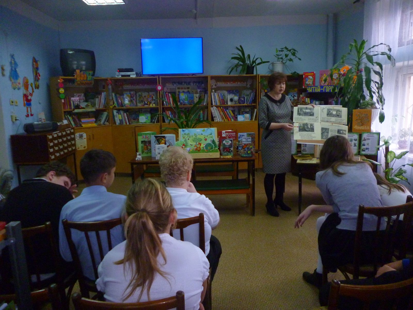 17.10.16г. учащиеся 7в класса вместе с педагогом-библиотекарем Федотовой Г. С. посетили библиотеку филиал №37 отдела искусств ЦДБ МБУК «ЦБС г. Казани», где библиотекарь читального зала Канаева И. В. провела экологический час "Жили были рыбы, птицы, звери" приуроченную к 115-летию советского графика, скульптора и писателя Е. И. Чарушина. Ребята познакомились с его биографией и творчеством, послушали интересные истории о животных и птицах, просмотрели мультфильм "Мальчик и лягушонок". Спасибо за очень интересное мероприятие!Фото1,Фото2.