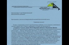 Воспитанники объединений ПДО Дормидонтовой М.Б. приняли участие в I туре XV Межрегиональной биологической олимпиады (организатор - Школа-интернат «Интеллектуал», г.Москва), которая проводилась в октябре 2013 года. Наши воспитанники Воронина Юлия и Чеснокова Жанна (учащиеся 7 класса лицея №121) по итогам первого заочного тура приглашены во Всероссийскую весеннею биологическою школу в г.Пущино Московской области.