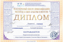 Новый учебный год экологический театр «Радуга» под руководством Шкуро А.А. начал с очередной победой: видеозапись спектакля «Чему же театр учит нас», сделанная во время «Дня открытых дверей» в присутствии большого числа зрителей, награждена дипломом лауреата I степени Международного конкурса-фестиваля «Ладино полетье» московского Фонда поддержки одарённых детей Ингениум (Гений) при поддержке Министерства культуры РФ. «Выражаем огромную благодарность за плодотворную работу, большой вклад в музыкально-эстетическое воспитание подрастающего поколения и сохранение национальных культур» - цитата из благодарственных писем руководителям Р.З.Гатауллину и А.А.Шкуро.