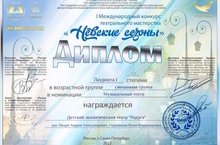 Мюзикл-попурри "Мы в ответе за тех, кого приручили", поставленный совместными силами театра "Радуга" (рук. Шкуро А.А.) и объединения "Эко Аниматоры" (рук. Герасимова Ю.В.) , завоевал диплом лауреата I степени Международного конкурса театрального мастерства "Невские сезоны" в Санкт-Петербурге. Это ещё одно подтверждение высокого уровня подготовки юных артистов и их руководителей. "Спектакль аккуратный, дети работают хорошо. Получилась достаточно осознанная игра. Костюмы, свет и декорации на высоком уровне. В целом атмосфера спектакля передана. Думаю, что задумка режиссёра осуществлена" - пишет член жюри Д.К.Тарасов в своём отзыве. Особо хочется отметить вокальный дуэт Таисии Мауль и Ксении Пыркиной, вокруг которых, собственно, и строится всё действие. И уже в самое ближайшее время эта команда представит свои новые работы на других всероссийских и региональных конкурсах. Пожелаем юным артистам успехов и новых побед!