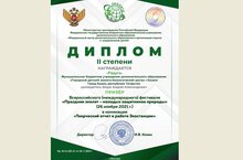 Уже шестой сезон наш театр «Радуга» работает в рамках Всероссийского проекта «Эколята – молодые защитники природы». Помимо участия в традиционных уроках, олимпиадах юных эколят и различных экологических акциях, артисты в образе маленьких желудей и их лесных сотоварищей создают новые сценки, агитки и целые спектакли, проводят тематические игры, викторины и фестивали. И этот труд тоже приносит свои «плоды»: Дипломом II степени Всероссийского (международного) фестиваля «Праздник эколят» в номинации «Творческий отчёт о работе Экостанции» награждена миниатюра «Друзья Земли», отразившая в весёлой, непринуждённой форме самые разные направления работы ГДЭБЦ. Возможность показать себя на столь высоком уровне и получить заслуженную награду – хороший стимул к дальнейшему творческому развитию коллектива.