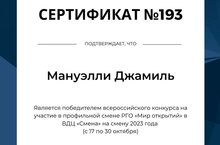 Поздравляем Мануэлли Джамиля - участника объединения "Занимательная экофизика" (руководитель Ануфриева Юлия Владимировна) с победой во всероссийском конкурсе на участие в профильной смене РГО "Мир открытий"! Мы гордимся достижениями наших ребят!
