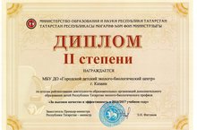 По итогам рейтингования деятельности образовательных организаций дополнительного образования детей Республики Татарстан эколого-биологического профиля Городской детский эколого-биологический центр г.Казани награжден дипломом II степени за высокое качество и эффективность в 2016/2017 учебном году.